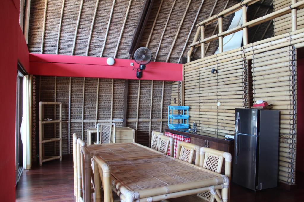 Our maisonette suits will comfortably accommodate up to 6 people. Located on the first and second floor of each villa, the suit features an equipped kitchen, a living room, a bathroom, and a large terrace. Suit comprises 2 bedrooms located in an open gallery on the second floor and one bedroom in the first floor. Designed with traditional bamboo material that will give you a new experience of relaxing.